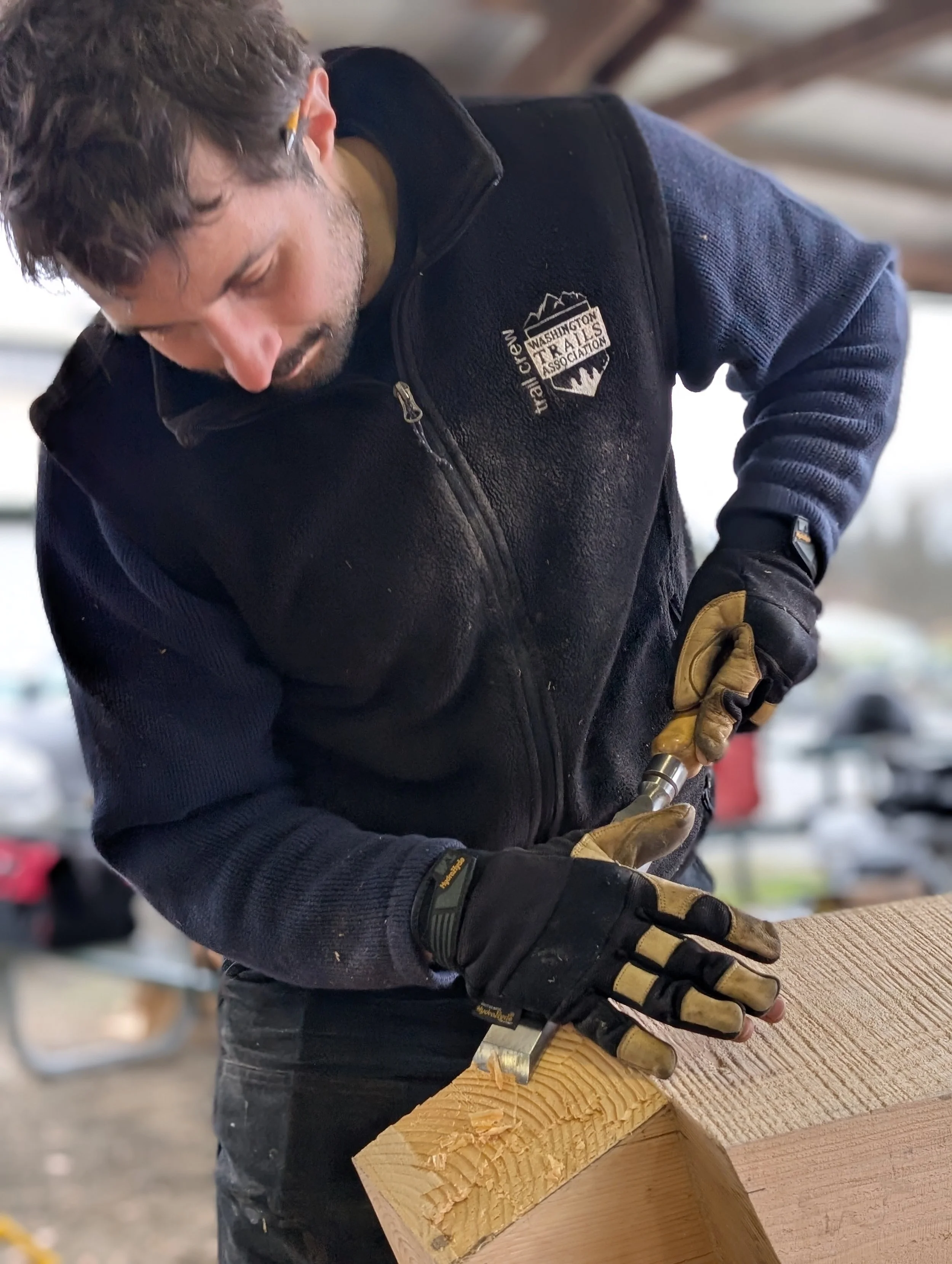 Joe grew up in Western Massachusetts and holds a B.A. from Hampshire College in outdoor education and travel writing. During his time at Hampshire, Joe developed an interest in sculpture through a project that centered on community space and solar technology. Joe began a career in trail construction in 2012 and currently manages contracts and projects within the Puget Sound region for the Washington Trails Association. On trail, Joe enjoys designing and laying out new trail, working with stone, and teaching trail building skills. Outside of the studio, Joe designs and builds simple furniture and is exploring kinetic sculpture by making Calder-style mobiles with wood, metal and other scrap materials. Joe joined the studio in 2025.